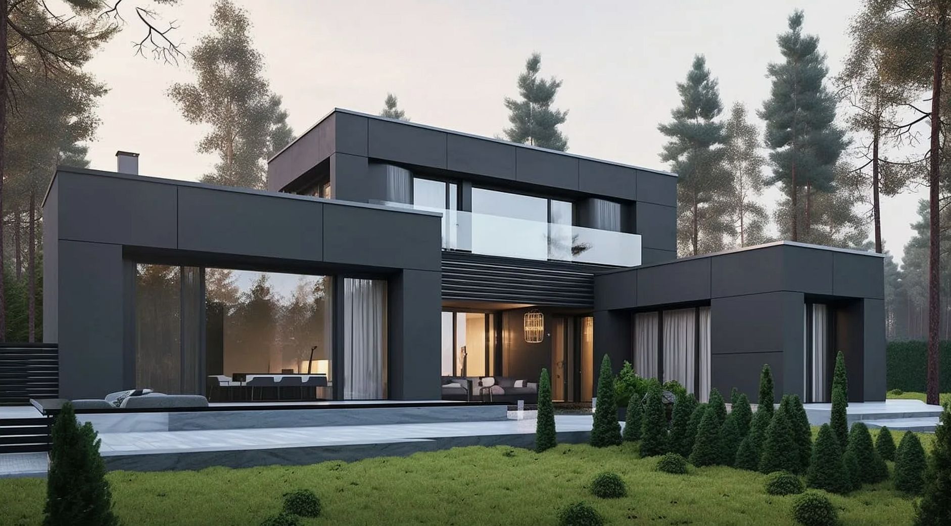 Уютный современный коттедж в стиле «Куб». Удобное расположение комнат.