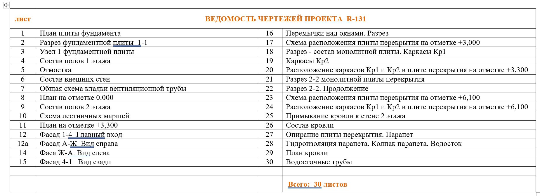 1. 30 листов чертежей доступных для понимания строительной бригаде любого уровня. Формат А4. Разделы КЖ, АР, КР - т.е. фундамент, стены, утепленная кровля.