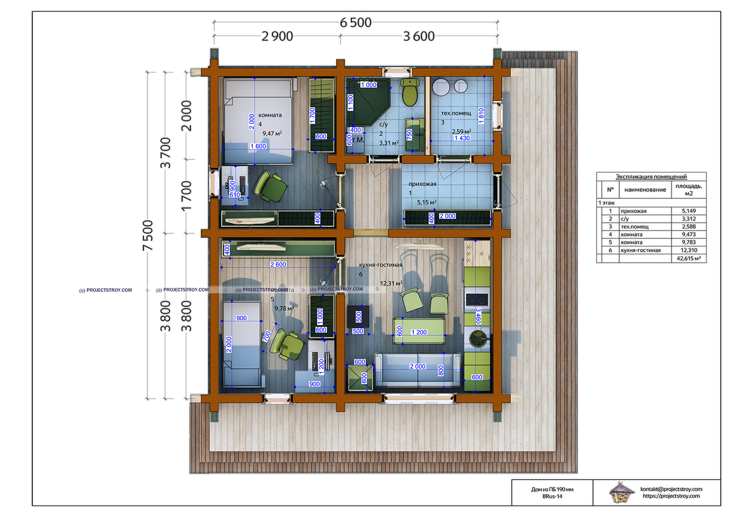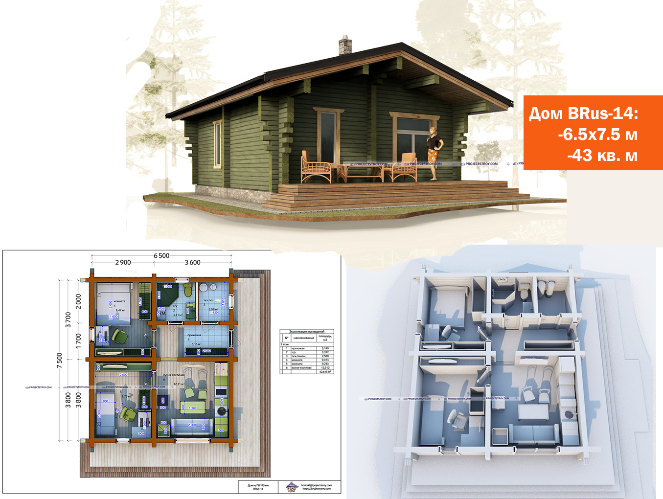 Дом из профилированного бруса 6.5х7.5 м