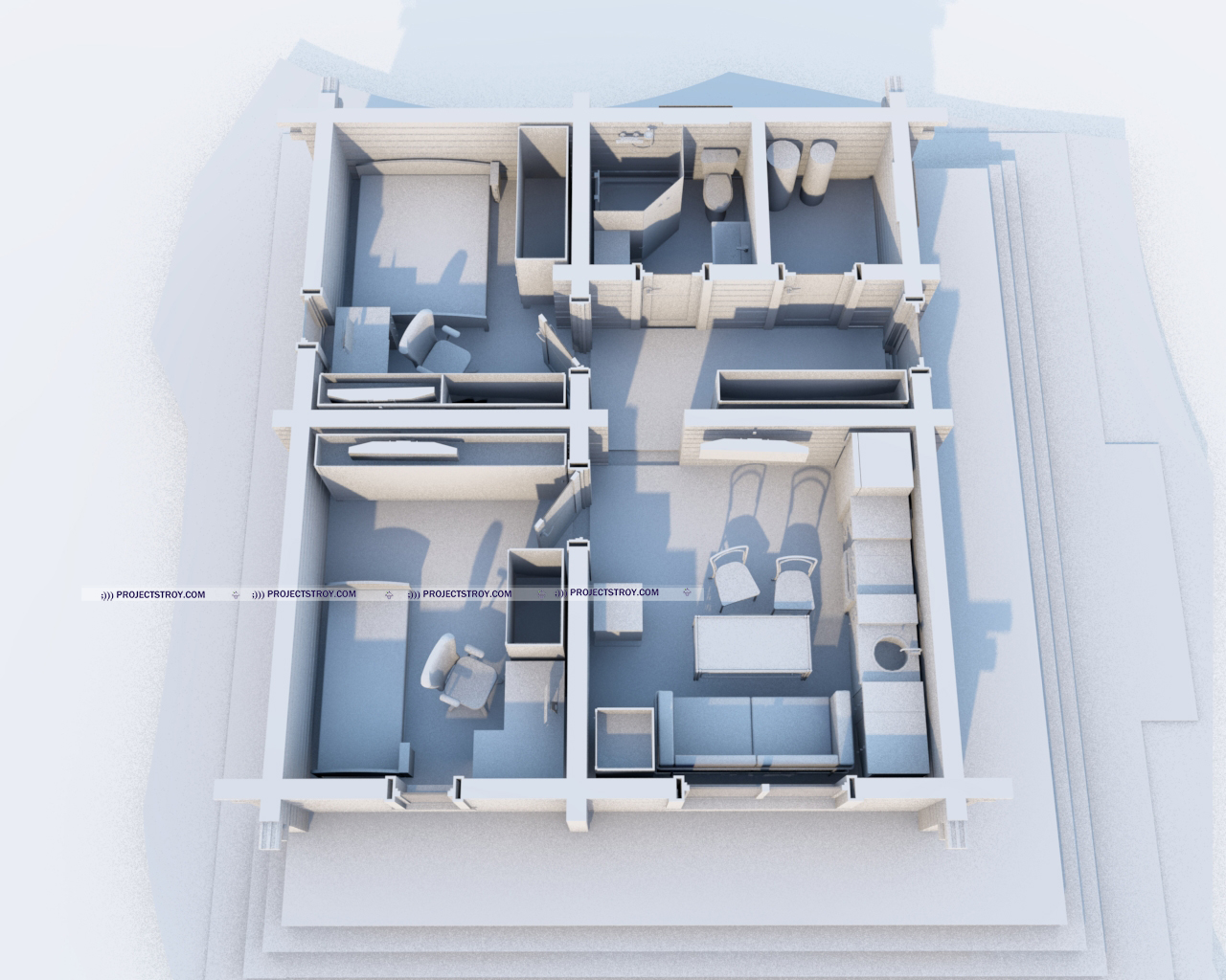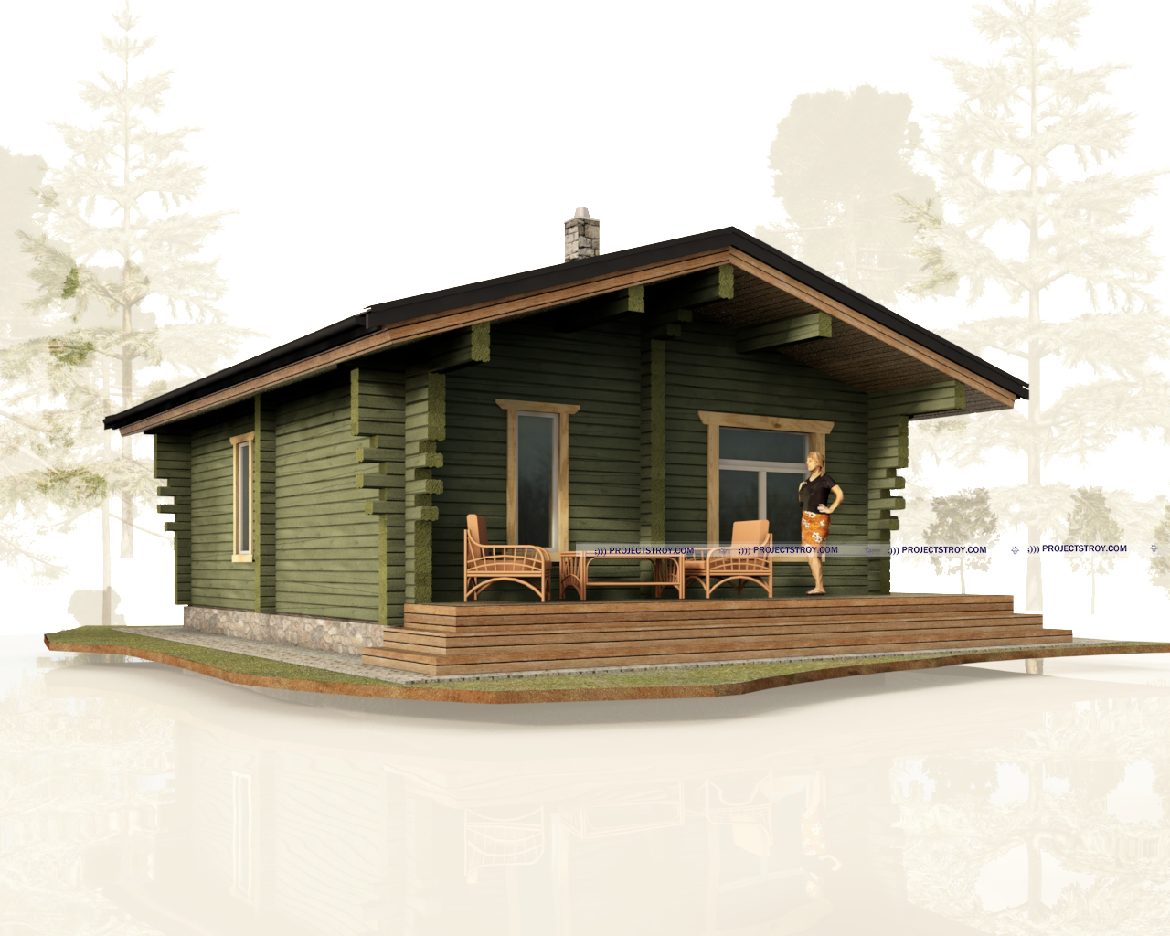 Сруб с тремя комнатами до 50 кв. м