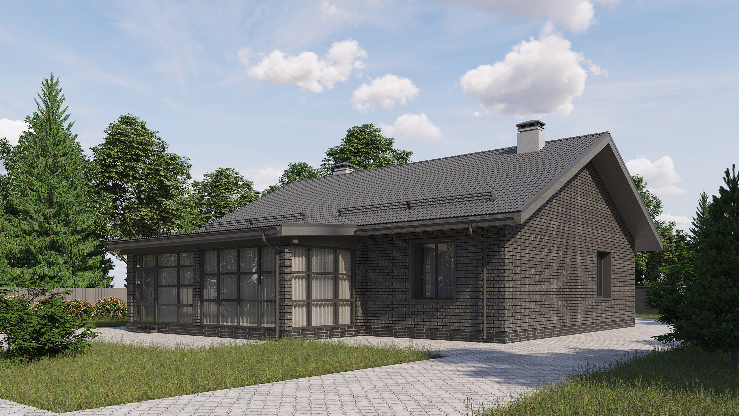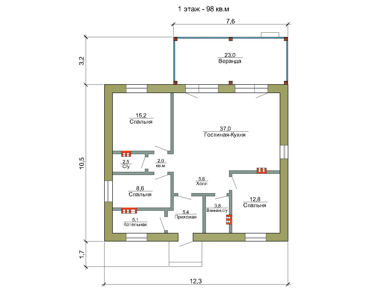 Состав стен: автоклавный газобетон, лицевой кирпич