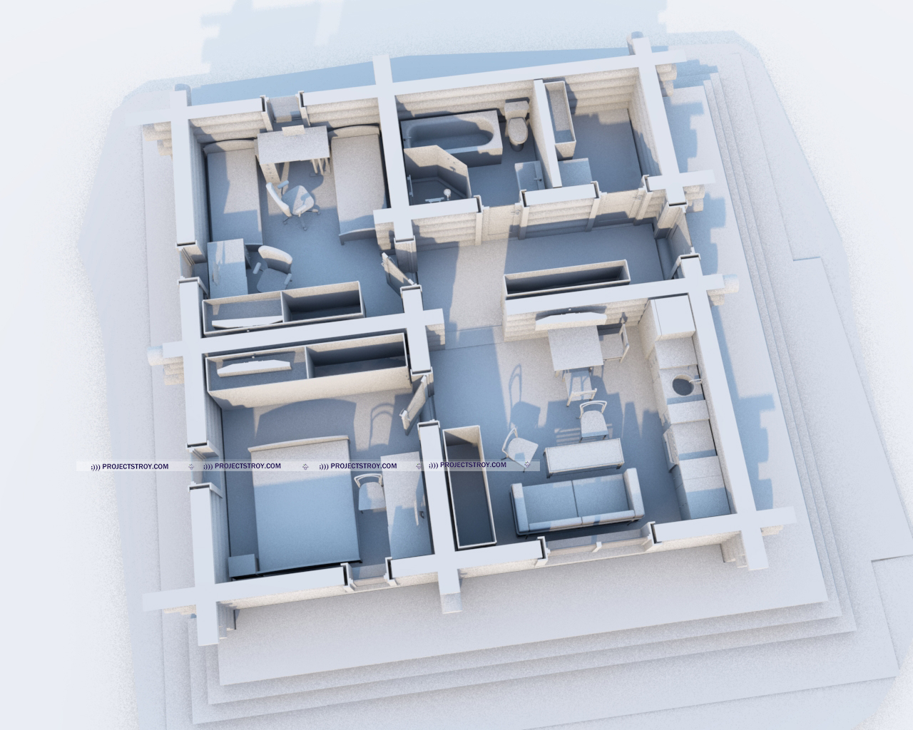 Одноэтажный проект с двумя спальнями - 53 кв. м
