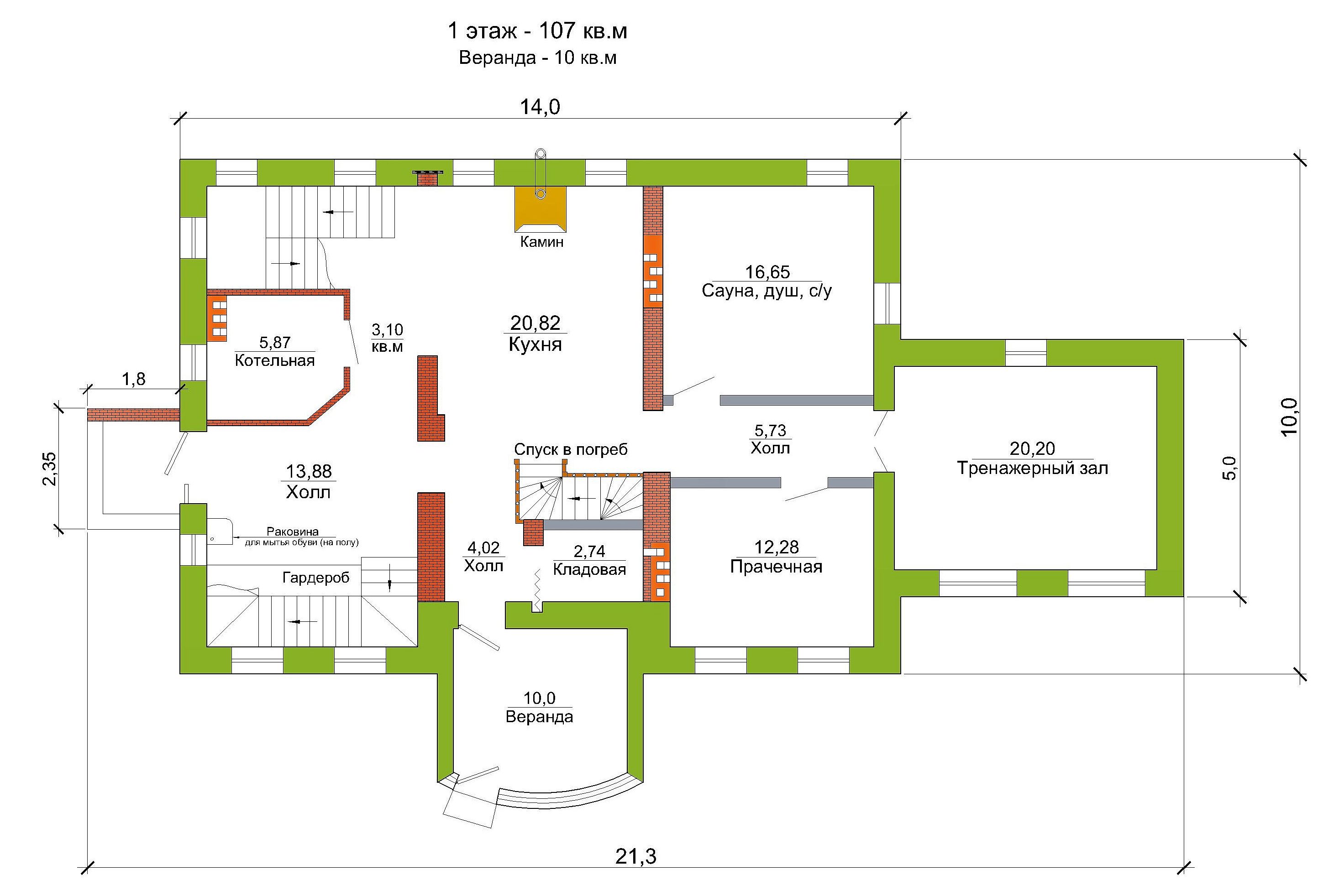 В доме есть все необходимое: удобная прихожая, большая гостиная, просторная кухня с камином, игровая комната для детей, кладовая, спортзал, баня-сауна, гостевая комната, кабинет, спальни, 3 с/у, 2 лестницы