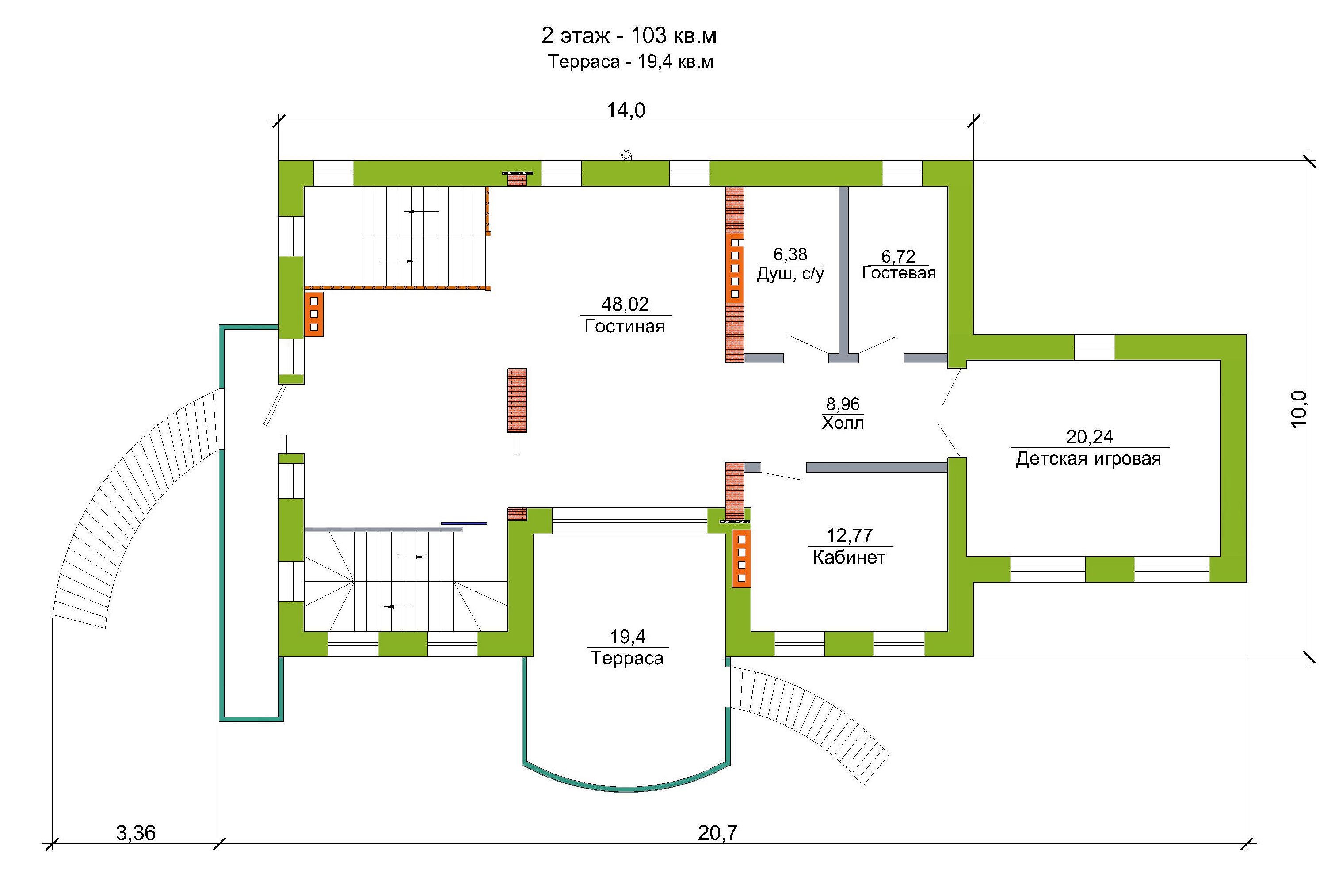 Состав стен: автоклавный газобетон, лицевой декоративный кирпич